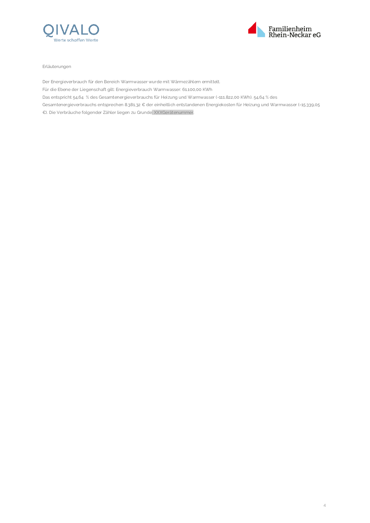 Zurzeit werden alle Verbrauchswerte (Wasser, Erdgas, Wärme und Strom) von diversen Anbietern erfasst und digitalisiert. Z.B. Die Heizkostenerfassung erfolgt durch einen Abrechnungsservice, die Strom- und Gaszähler werden von unterschiedlichen Energielieferanten abgelesen. Die Ablesung des Wasserverbrauchs erfolgt über den örtlichen Versorger.